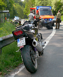 Zwei Kradfahrer aus dem Ruhrgebiet, die gemeinsam auf Tour im Bergischen Land waren, stürzten heute mittag auf der Jabachtalstraße. Gegen 12 Uhr bog ein Oldtimer-Beiwagengespann von Donrath kommend nach rechts auf die K 13 in Richtung Birk ab. Warum die beiden nachfolgenden Biker sich daraufhin gegenseitig ins Gehege kamen, konnte vor Ort nicht gänzlich geklärt werden.