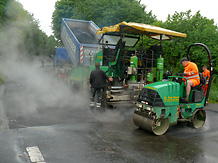Asphaltfertiger und Walze bei der Arbeit